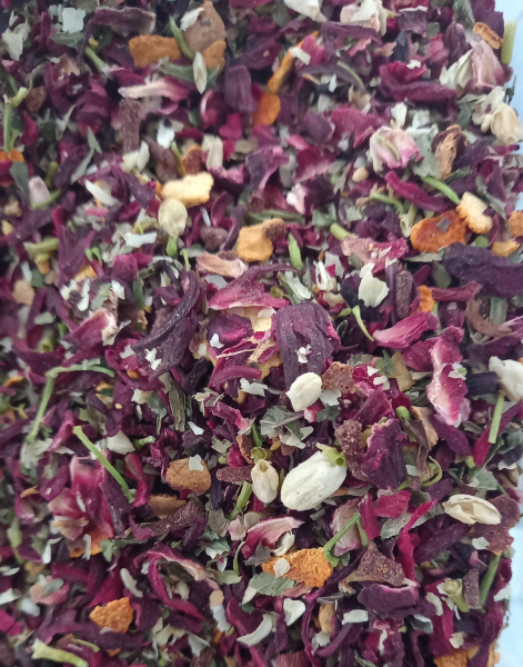 Ingrédients : Hibiscus, Jasmin, Menthe, écorces d’agrumes, clous de girofle